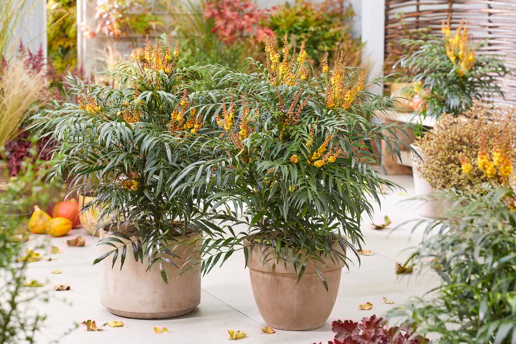 Mahonia are stunning plants that add colour and life to the winterlandscape. Mahonia Volcano ('MYOY'PBR) shows an eruption of colour with its orange-yellow flowers which combine nicely with the silvery green leaves. The flowers appear early from October to November, and Mahonia Volcano is hardy to -15 ºC. Mahonia eurybracteata Meteor ('Hillmah'PBR) shows off its large yellow flower spikes from late August until November, resembling meteors and bringing a burst of colour to the landscape. Combined with the colour-changing foliage, Meteor is a great addition to the landscape and hardy to -15 ºC.