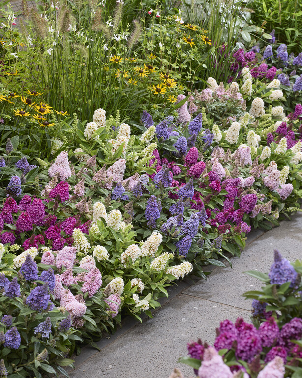 La serie Little Rockstars® offre colore intenso e valore per gli impollinatori in formato compatto. Raggiungendo solo 40–50 cm di altezza e larghezza, questi arbusti sono ideali per giardini urbani, contenitori e spazi ridotti. I fiori compaiono continuamente da estate a autunno in tonalità vivaci di viola, rosa, porpora, rosso e bianco. La serie è altamente fiorifera, resistente alla siccità e attrattiva per le farfalle, combinando decorazione e valore ecologico. Produzione uniforme e facilità di gestione la rendono ideale per spazi piccoli con lunga fioritura.