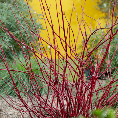 Als je op zoek bent naar een compactere heester, dan bieden de meeste Cornus je de mooiste kleuren in de herfst, net voordat de bladeren vallen om de kleurrijke winterstelen te onthullen. Cornus Miracle valt helemaal op met zijn unieke paars-roze bladeren in de nazomer en intens rode stelen in de herfst.