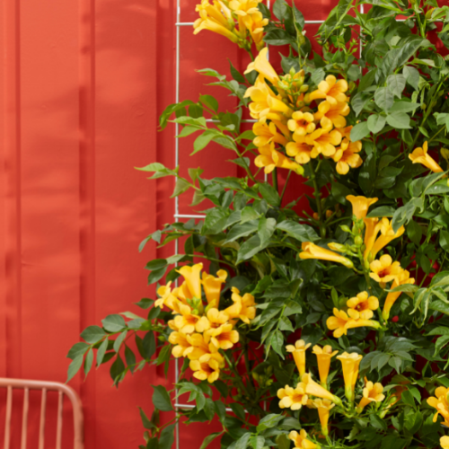 Hetzelfde geldt voor Campsis Golden Trumpet: welke van juli tot september met zijn prachtige trompetvormige bloemen patst, en Wisteria Amethyst Falls: bloeiend in het vroege voorjaar en een tweede keer tijdens de mooie herfstmaanden. Drie fantastische klimmers die de herfsttuin de nodige kleur zullen geven!